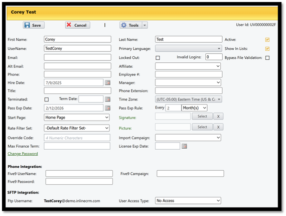 Locked Out: If this box is checked, the User has been locked out of the system and is prohibited from logging in.