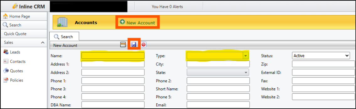 1. 3. Fill in applicable fields - Name and Type are required to Save
