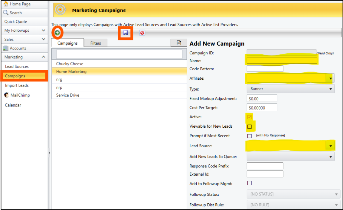 1. vii. Viewable for New Leads- Check box to make Campaign available when users search for leads