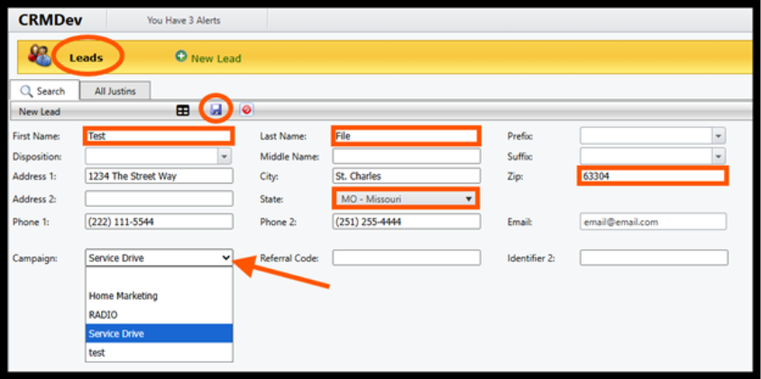 4. Select a Campaign from the drop-down menu. (The Campaign allows you to track where the customer or lead came from and measure the effectiveness of your marketing)